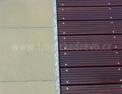 pojezdová rampa Angelim Vermelho, MÚ Semily - detail kotvení, styk s dlažbou