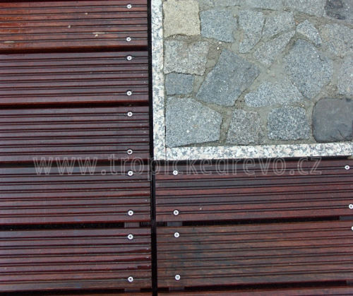 pojezdová rampa Angelim Vermelho, MÚ Semily - detail kotvení, styk s dlažbou